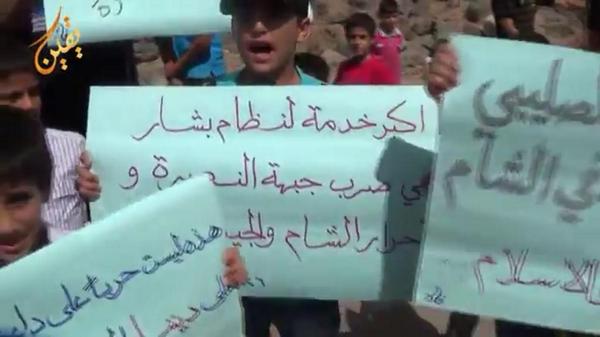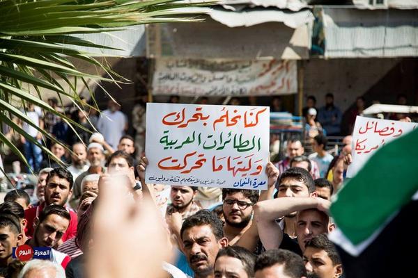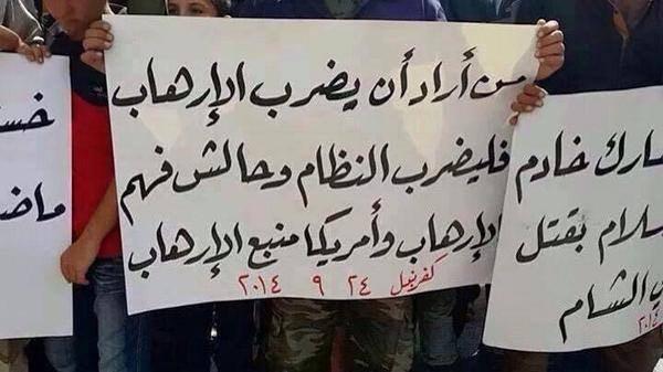 مظاهرات حاشدة في ريف حماة للتنديد بالتحالف الدولي أحرق فيها المتظاهرون أعلام دول التحالف