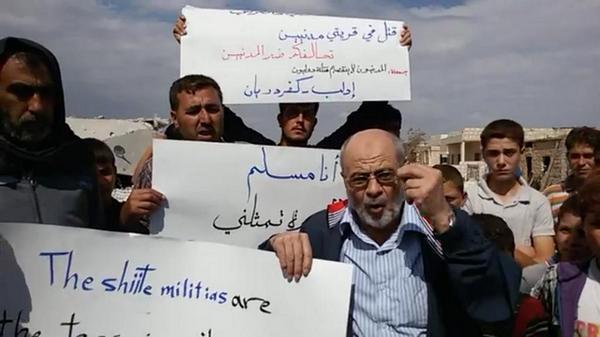 #حمص_الحولة_المحاصرة خروج مظاهرة حاشدة تندد بضربات التحالف الغربي العربي العسكري ضد اهل السنة والجماعة في سوريا