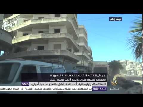 أظهرت لقطات خاصة من #أريحا بريف #إدلب انتشار قوات #جيش_الفتحوسط المدينة، وأشار مراسل #الجزيرة إلى نزوح الآلاف تخوفا من قصف عشوائي لقوات النظام بعد تقهرقرها باتجاه الساحل