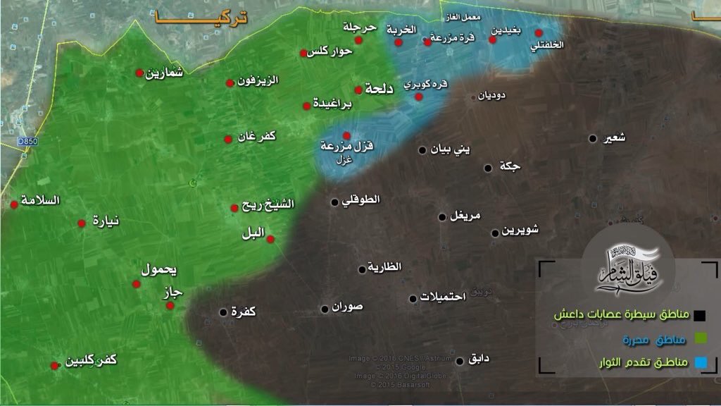 استشهاد تسعة من مقاتلين لواء صقور الجبل بغارة جوية روسية على نقاط المرابطة ضد تنظيم داعش في بلدة احرص بريف حلب الشمالي