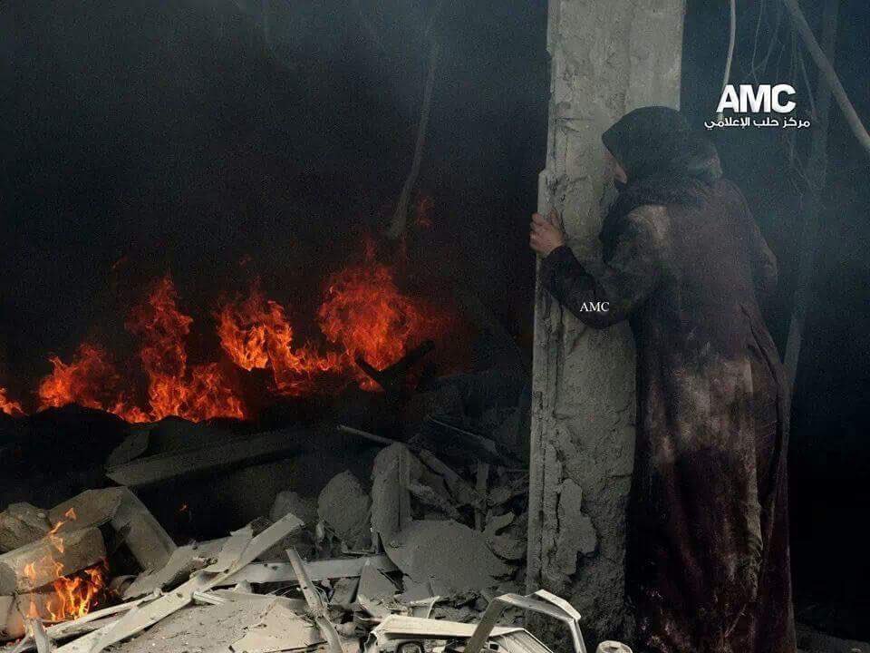 في مثل هذا اليوم قبل عامين بالضبط و بينما كان النظام يفاوض في جنيف كان يحرق أولاد هذه المرأة بنفس اللحظة في حلب ...