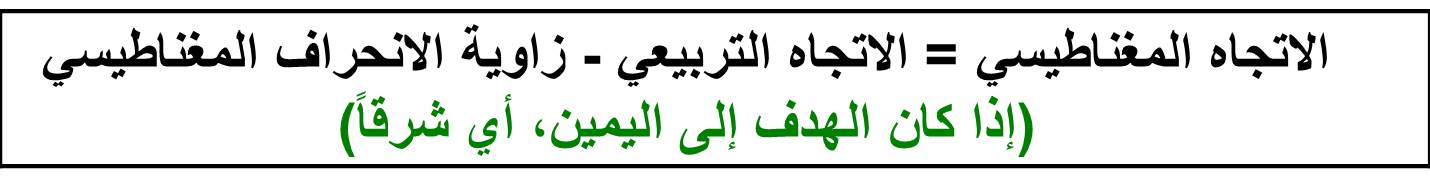العلاقة الحسابية بين الانحراف المغناطيسي و الحقيقي: