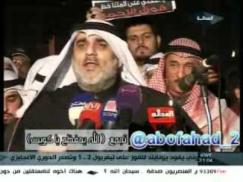 خلال تجمع الله يحفظك يا كويت في ساحة الارادة حيث وعد انه سيسترجع الاراضي التي اغتصبتها السعودية من الكويت