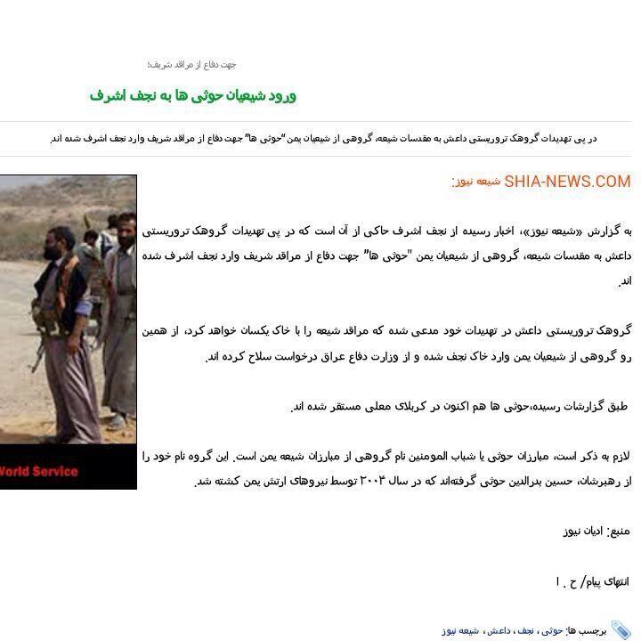 وكالة انباء شيعه نيوز اﻻيرانية تعلن وصول افواج عناصر مليشيا الحوثي الى مدينة النجف لمناصرة المالكي