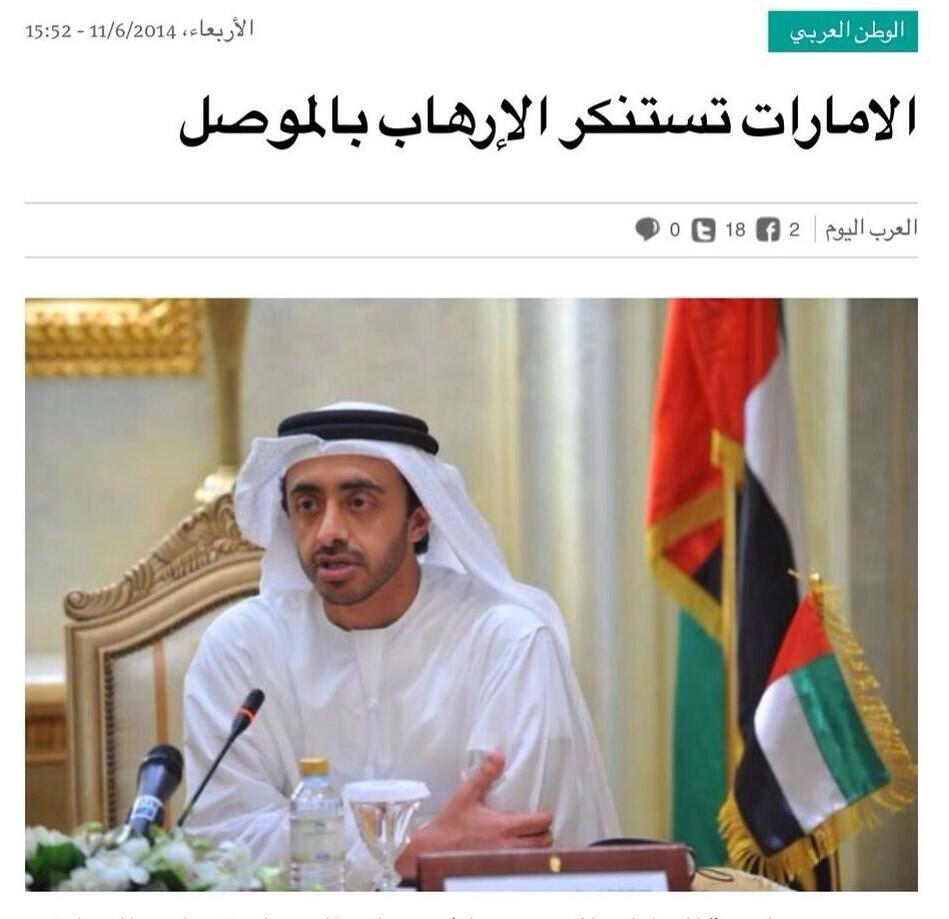 الأمارات تعلن موقفها بالوقوف الى جانب المجرم نوري المالكي ضد ماتسميه "بالأرهاب"