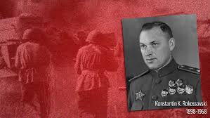 تجلت موهبته كقائد عسكري في أهم العمليات الاستراتيجية التي قام بها الجيش السوفيتي مثل معركة سمولينسك ومعركة موسكو ومعركتي ستالينغراد وكورسك و عملية "باغراتيون" والعمليتين الاستراتيجيتين في بروسيا الشرقية وبوميرانيا و معركة برلين. ولد قسطنطين روكوسوفسكي البلوني الاصل يوم 9 ديسمبر/كانون الاول عام 1896 في مدينة فيليكيه لوكي بمقاطعة بسكوف الروسية في عائلة عامل بالسكك الحديد. واشتغل عاملا في سن مبكرة وشارك عام 1912 في مظاهرة مناهضة للسلطة، فتم اعتقاله وافرج عنه لعدم بلوغه سن الرشد. واستدعي عام 1914 للخدمة في وحدات الخيالة بالجيش الروسي ابان الحرب العالمية الاولى ومنح وسام القديس جورجيوس ورتبة ضابط صف. ورحب قسطنطين روكوسوفسكي بثورة البلاشفة في روسيا عام 1917 وانتقل إلى جانب الجيش الأحمر رغم ان شقيقه اقترح عليه الالتحاق بفيلق قومي بولندي . ترقى روكوسوفسكي إبان الحرب الاهلية في روسيا إلى منصب قائد لواء الخيالة. ادى خدمته العسكرية في فترة ما بعد الحرب الاهلية في منطقة الشرق الاقصى السوفيتي، حيث كان يكافح لواءه عصابات الصينيين في منطقة سكة الحديد الصينية الشرقية. وبعد تخرجه من دورة الاركان تم تعيينه بمنصب قائد الفرقة في مدينة مينسك بغرب الاتحاد السوفيتي. في عام 1937 تم اعتقاله بتهمة المشاركة في مؤامرة ضد الدولة السوفيتية، فتعرض للتعذيب الجسدي والمعنوي وحكم عليه بالاعدام مرتين، لكنه لم يعترف بانه مذنب. وتم الافراج عنه فجأة عام 1940 ، بعد قضائه فترة 3 سنوات في السجن. وتم تعيينه قائدا للفيلق الميكانيكي ومنح رتبة عميد. وشارك فيلق روكوسوفسكي منذ اول ايام الحرب الوطنية العظمى في المعارك مع القوات الألمانية. ومنح وسام الراية الحمراء لقاء المعارك الدفاعية الناجحة في منطقة مدينة لوتسك. في يوليو/تموز عام 1941 عينته هيئة القيادة العامة قائدا للجبهة الغربية التي كانت حينذاك عبارة عن وحدات متفرقة، فقد معظمها قدرة على المقاومة. وانهارت الجبهة تحت ضربات التشكيلات المدرعة الألمانية. وعند اقتراب الوحدات الألمانية المتقدمة من موسكو امره غيورغي جوكوف بان يتشبث هو وجيشه السادس عشر بخط كريكوفو الدفاعي، مهما كان الثمن. واصيب روكوسوفسكي بجروح خطيرة وتم نقله بعد التعافى إلى جبهة "بريانسكي". في صيف عام 1942 شكلت القيادة العامة جبهتي "ستالينغراد" و"دونسكوي" بغية ايقاف الجحافل الألمانية المخترقة للدفاعات السوفيتية في منطقة نهر الدون، فترأس روكوسوفسكي جبهة "دونسكوي". وأمره ستالين في يناير/كانون الثاني بان يتحمل المسؤولية عن دحر جيش باولوس الألماني المحاصر في منطقة ستالينغراد. اطلقت على جبهة "دونسكوي" عام 1943 تسمية جديدة وهي "سينترالني" وشاركت هذه الجبهة بقيادة روكوسوفسكي في معركة كورسك. ثم قامت بدحر مجموعة الجيوش الألمانية الوسطى وتحرير مدينة اوريول. شاركت الجبهة البيلوروسية الاولى تحت قيادة روكوسوفسكي في القيام بعملية "باغراتيون" في بيلوروسيا. ووصلت تشكيلاتها إلى نهر فيسلا في بولندا. واستولت في سبتمبر/ايلول عام 1944 على ضواحي مدينة وارسو. منح روكوسوفسكي لقاء عملياته الناجحة في بيلوروسيا وبولندا رتبة مارشال الاتحاد السوفيتي وتم تعيينه في أكتوبر/تشرين الاول عام 1944 قائدا للجبهة البيلوروسية الثانية التي شاركت في العمليتين الاستراتيجيتين في بروسيا الشرقية وبوميرانيا وحررت مدينتي غدانسك ووشيتسين البولنديتين. كما شاركت جبهة روكوسوفسكي في معركة برلين والتفت على العاصمة الألمانية ووصلت إلى نهر ألألب، حيث التقت بوحدات جيش الجنرال مونتغيمري البريطاني. قاد المارشال روكوسوفسكي يوم 24 يونيو/حزيران عام 1945 استعراض النصر في موسكو الذي اشرف عليه المارشال جوكوف. تم تعيينه قائدا لمجموعة القوات الشمالية السوفيتية في بولندا. وطلبت الحكومة البولندية عام 1949 بان يتم ايفاده إلى بولندا ليشغل منصب وزير الدفاع فيها،فمنح رتبة مارشال بولندا. وظل يتولى منصب وزير الدفاع ونائب رئيس الوزراء البولندي حتى عام 1956 ، حين قدم ا